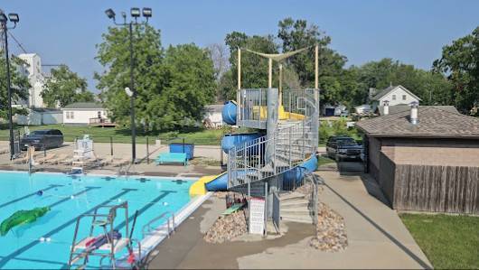 "Great small town pool. Several slides and a diving board. Fun splash pad for the little ones. The kids love playing on shark Great family fun on hot summer days"